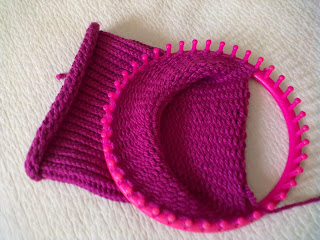 Não consegui resistir á compra de um novelo (6 €), para fazer uma gola no tear circular.
