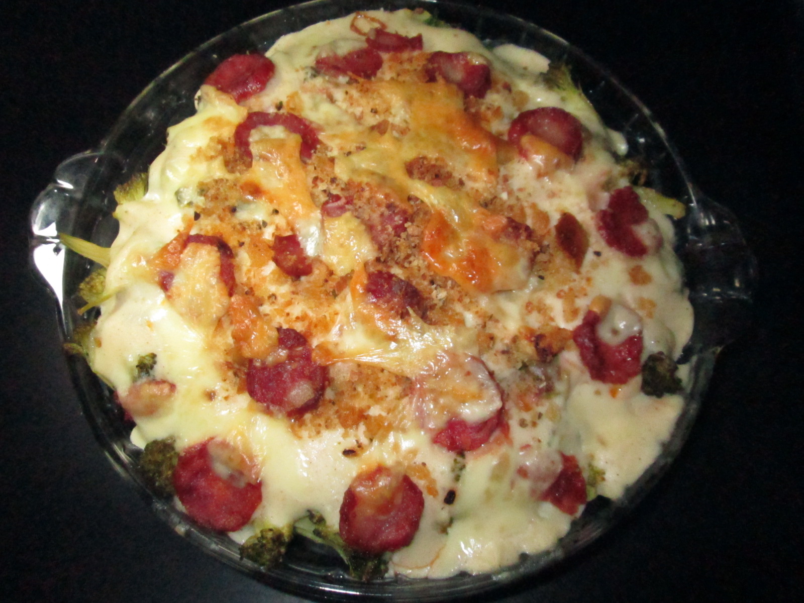 Como tinha sobrado batatas e frango da actifry e couves de Bruxelas cozidas, fiz este gratinado.