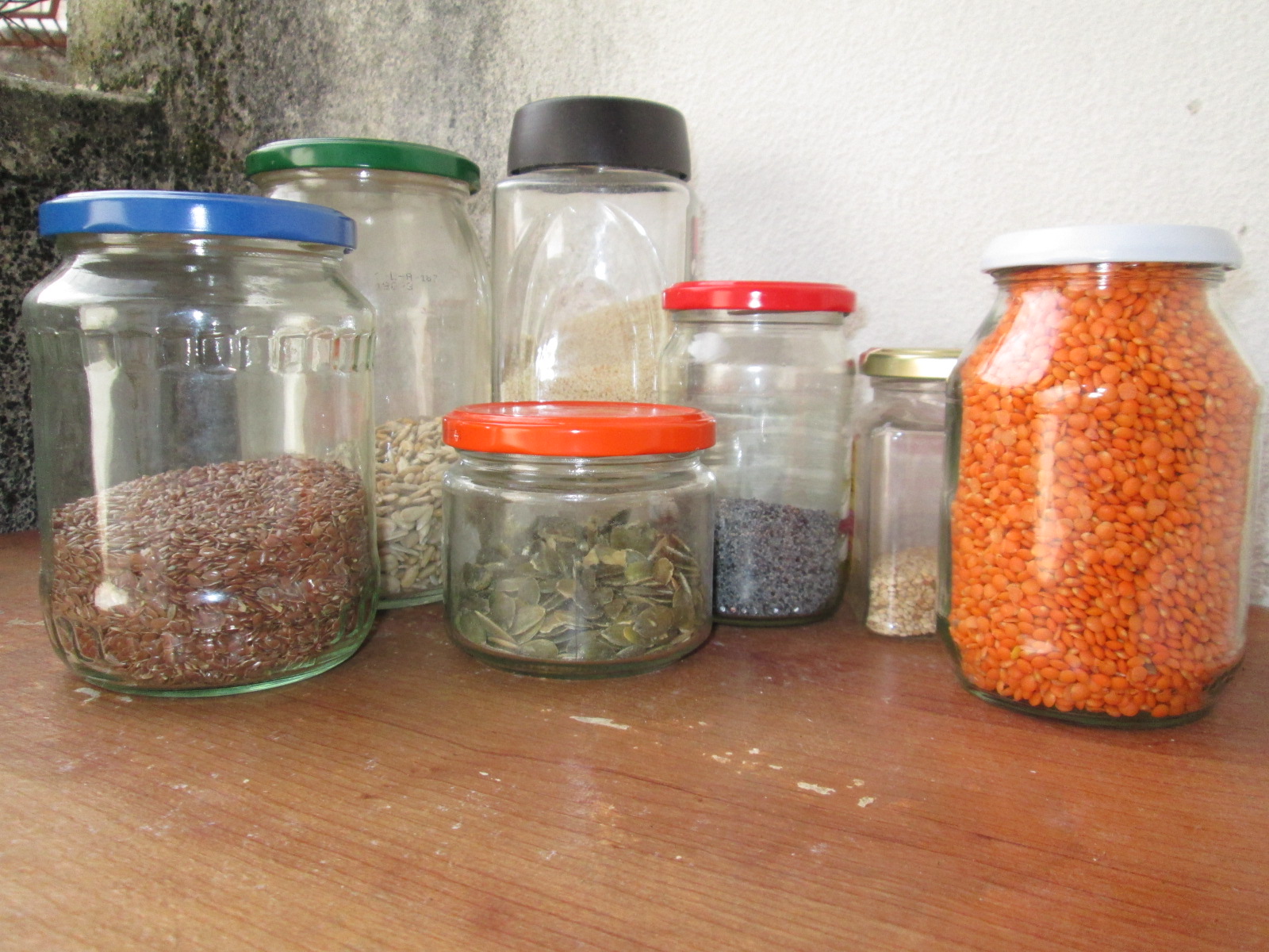 Nos frascos de especiarias que terminam não deite fora, lave e compre só o pacote de plástico e encha pelo menos umas duas vezes, bem mais económico.